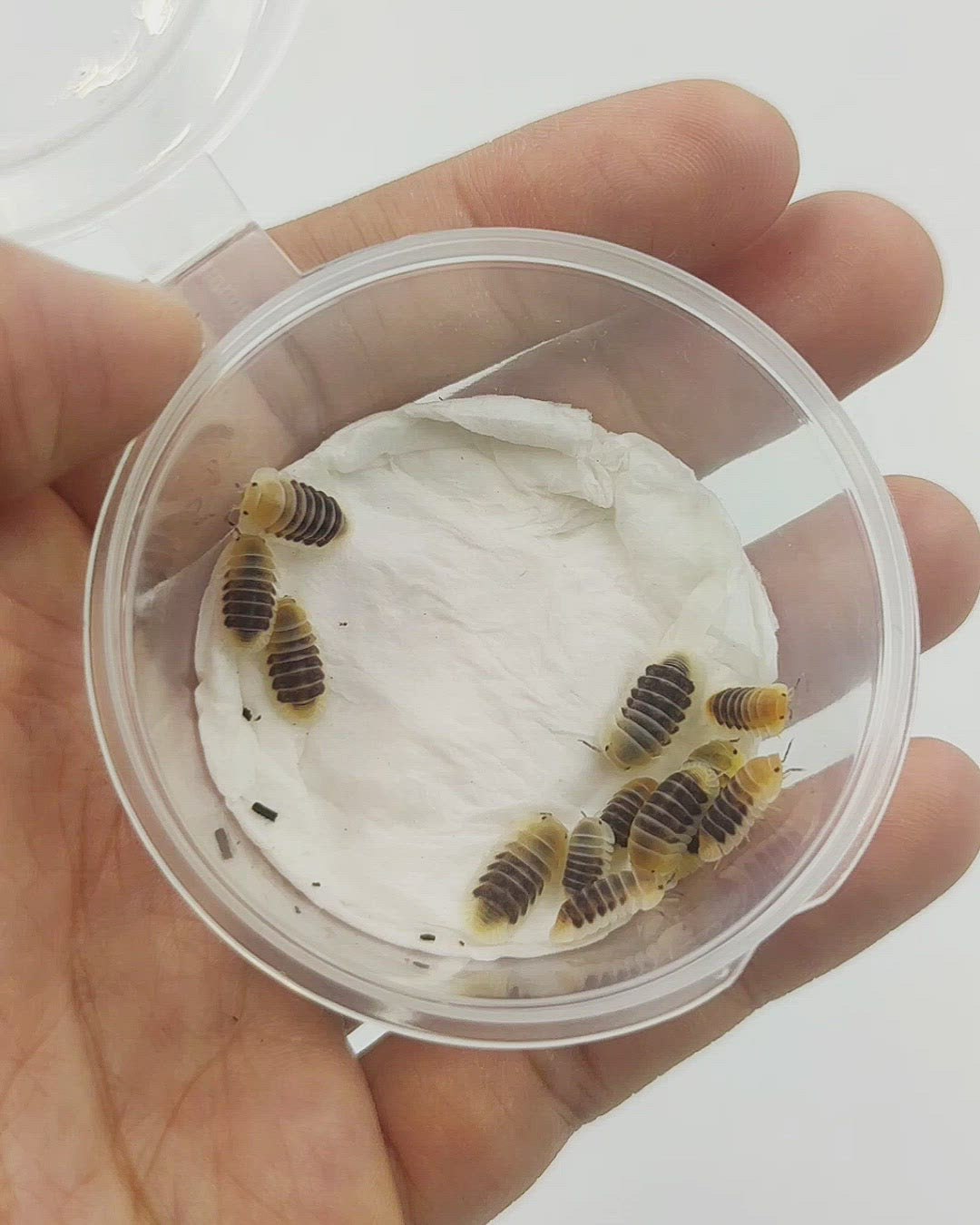 One of the classic Thai Cubaris species. Jupiters are one of the most beautiful rolling isopods in the hobby. They have yellow edges, with a beautiful blue gradient going the middle.